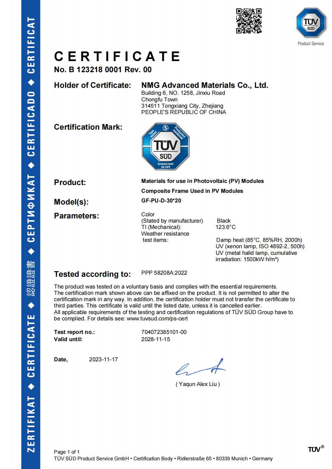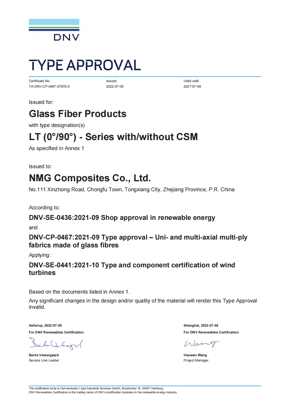 公司多個產品通過法國GTT、挪威船級社DNV、中國船級社CCS、南德認證TUV和全生命周期EPD等權威認證。